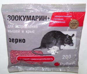 Родентицид от грызунов "ЗООКУМАРИН+ЗЕРНО" разработан для эффективной борьбы с крысами, мышами и всевозможными видами грызунов, в разных типах помещений, а также на сельскохозяйственных полях, на свалках, в жилых домах, на водоемах, канализационных коллекторах. Препарат готов к применению и нет необходимости в добавлении других кормов. При проникновении в организм грызуна этот препарат воздействует на синтез протромбина, что ведет к нарушению механизма кровесвертывания и провоцирует склонность к кровотечениям. Препарат очень хорошо привлекает грызунов и употребляется ими в пищу. Грызуны погибают на 4-5 день после употребления "ЗООКУМАРИН+ЗЕРНО", поэтому препарат не вызывает страх к приманке.