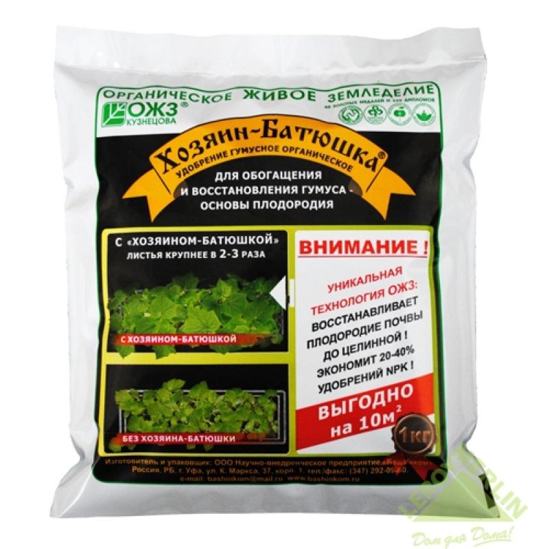 Гумусное удобрение Хозяин-Батюшка используется для повышения плодородия почвы и урожайности, для увеличения гумусного слоя, улучшения структуры почвы, питания и развития растений, снижения нитратов и нейтрализации тяжелых металлов и других вредных веществ. Это природный препарат длительного пролонгированного действия.На основании недавно проведённых исследований были получены отличные результаты! В основе удобрения Хозяин-Батюшка - уникальная пролонгированная форма Гуми-90 – это универсальное, антистрессовое, ростоукрепляющее, иммуностимулирующее биоактивированное гумусное удобрение.