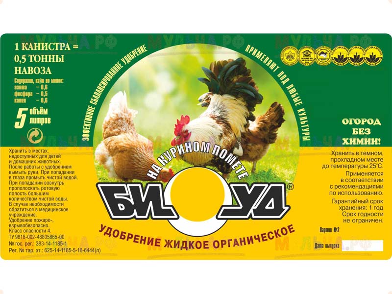 Перед использованием удобрения "БИУД его разбавляют примерно в 10-20 раз (в зависимости от удобряемых культур), перемешивают, и полученный раствор используют для внесения в почву.